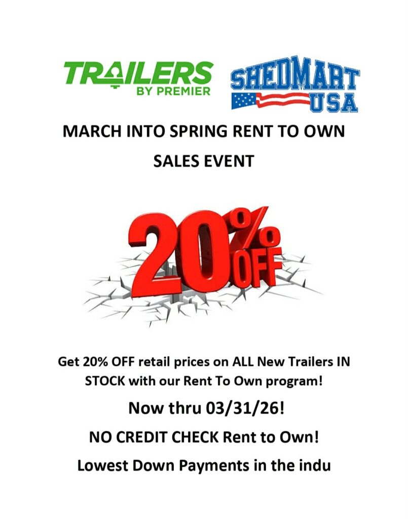 • 12′, & 14′ Trailers $70.00 Down PLUS 1st Months Rent